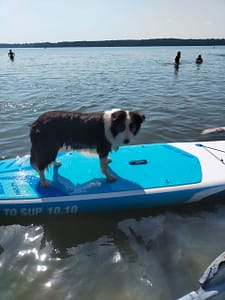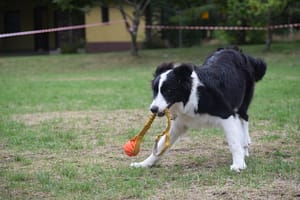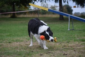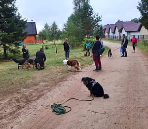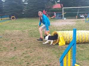 W dniach 22.06.2022 r. – 28.08.2022 r. byliśmy na obozie sportowym z psami w Czaplinku (woj. zachodniopomorskie) organizowanym przez Monikę Niewiadomską – „PROGRES”. Na obozie były Baxi Blue, Brendy oraz Tara. Obóz, jak zwykle, obfitował w wiele ciekawych zajęć i każdy uczestnik mógł wybrać coś dla siebie. Najbardziej urozmaicony czas miała nasza najmłodsza suczka Tara. Uczestniczyliśmy z nią w zajęciach z ogólnego posłuszeństwa, ćwiczeń na piłkach, ćwiczeń w jeziorze (utrzymywanie się na desce surfingowej) , Nosework, które prowadziła Ewa Opulska – „CANIS SPORT”. Także, pod okiem Moniki Niewiadomskiej, rozpoczęliśmy przygodę z agality – oczywiście były to ćwiczenia dostosowane do wieku Tary. Tara jest psem bardzo pojętnym, chętnym do nauki i zdobywania nowych umiejętności. Ćwiczy z ogromnym zaangażowaniem, cały czas wpatrzona jest w przewodnika. Największym sukcesem było zdobycie przez Tarę (5 miesięcy) pierwszego miejsca w zawodach Rally-O!!! (powtórzyła sukces Brendy z 2021 roku). W zawodach tych brało udział 13 psów, a Tara była jedynym szczenięciem. Duma nas rozpierała!!!